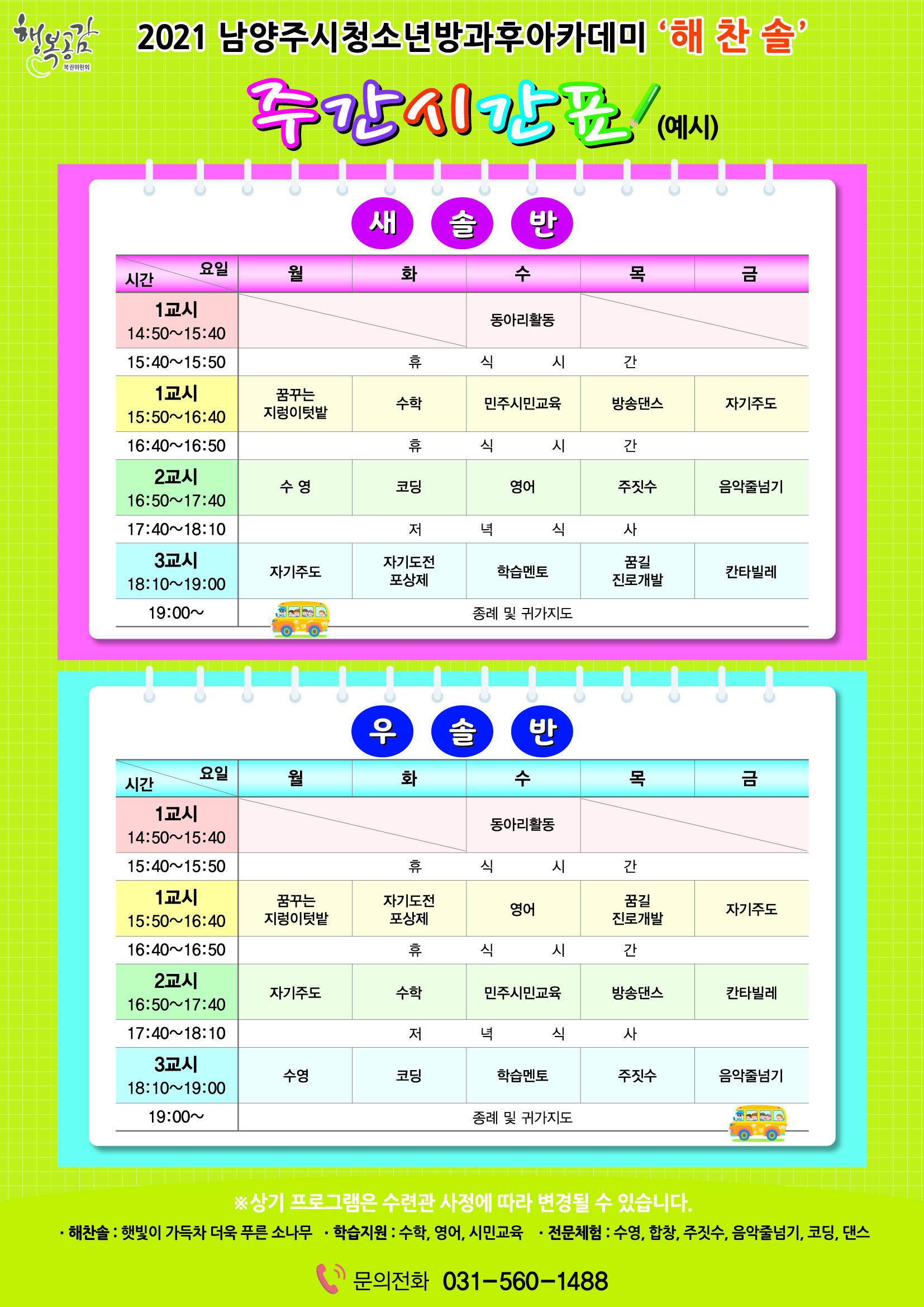 청소년수련관 [모집중] 2021년 청소년방과후아카데미 초등학교 4~6학년 모집 안내 작성자 청소년수련관 등록일자 2021년 6월 15일 0시 0분 0초 조회 500 2021 모집전단뒷면.jpg [ Size : 2.32MB, Down : 324 ] 미리보기 다운로드 목록보기