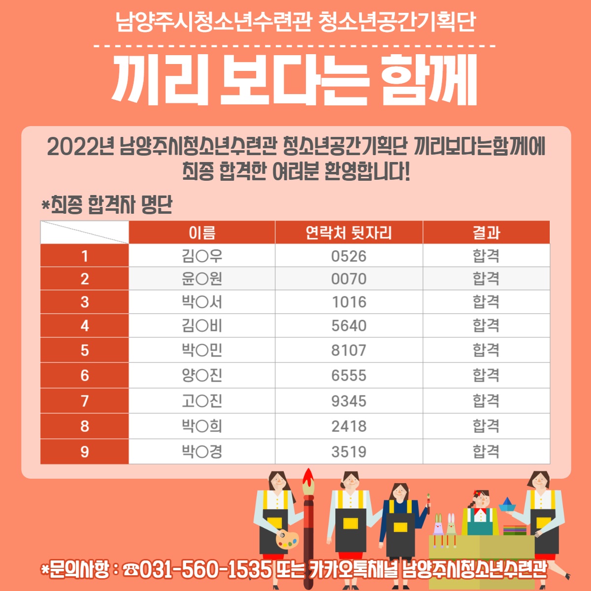 청소년수련관 [늘청] 2022년 2차 남양주시 청소년참여위원회 늘푸른청소년위원회 최종합격자 안내 작성자 청소년수련관 등록일자 2022년 4월 19일 0시 0분 0초 조회 428 합격.jpg [ Size : 262.81KB, Down : 153 ] 미리보기 다운로드 목록보기