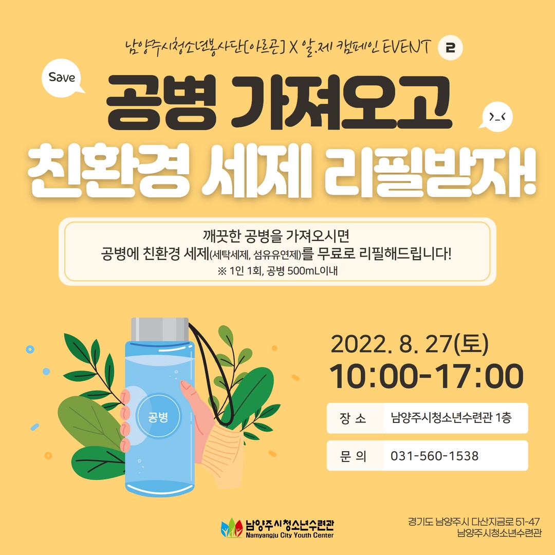 청소년수련관 [청소년수련관] 8월 27일, 친환경 세제 무료나눔 이벤트 안내