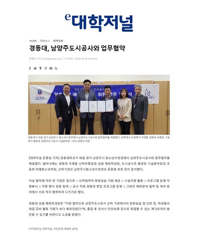 2024.10. 경동대, 남양주도시공사와 업무협약 작성자 청소년수련관 등록일자 2024년 12월 10일 15시 35분 43초 조회 160 경동대, 남양주도시공사와 업무협약 2024.10. 경동대, 남양주도시공사와 업무협약.png [ Size : 317.13KB, Down : 111 ] 미리보기 다운로드 목록보기