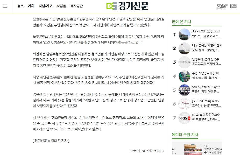 2025.05. 남양주시 늘푸른청소년위원회, 주민참여예산 제안서 제출 작성자 청소년수련관 등록일자 2025년 11월 26일 11시 41분 45초 조회 11 남양주시 늘푸른청소년위원회, 주민참여예산 제안서 제출남양주시 늘푸른청소년위원회, 주민참여예산 제안서 제출남양주시 늘푸른청소년위원회, 주민참여예산 제안서 제출 남양주시 늘푸른청소년위원회, 주민참여예산 제안서 제출_1.jpg [ Size : 459.47KB, Down : 16 ] 미리보기 다운로드 남양주시 늘푸른청소년위원회, 주민참여예산 제안서 제출_2.jpg [ Size : 327.17KB, Down : 18 ] 미리보기 다운로드 목록보기