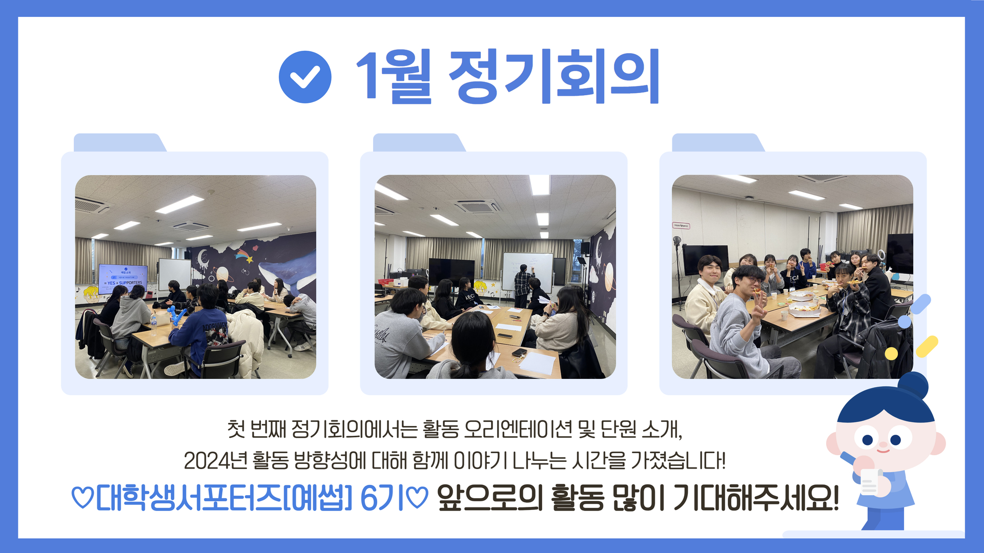 [대학생서포터즈] 1월 정기회의 작성자 청소년수련관 등록일자 2024년 3월 13일 11시 45분 37초 조회 195 예썹_1월.jpg [ Size : 400.97KB, Down : 102 ] 미리보기 다운로드 예썹_1월_2.jpg [ Size : 1.01MB, Down : 99 ] 미리보기 다운로드 목록보기
