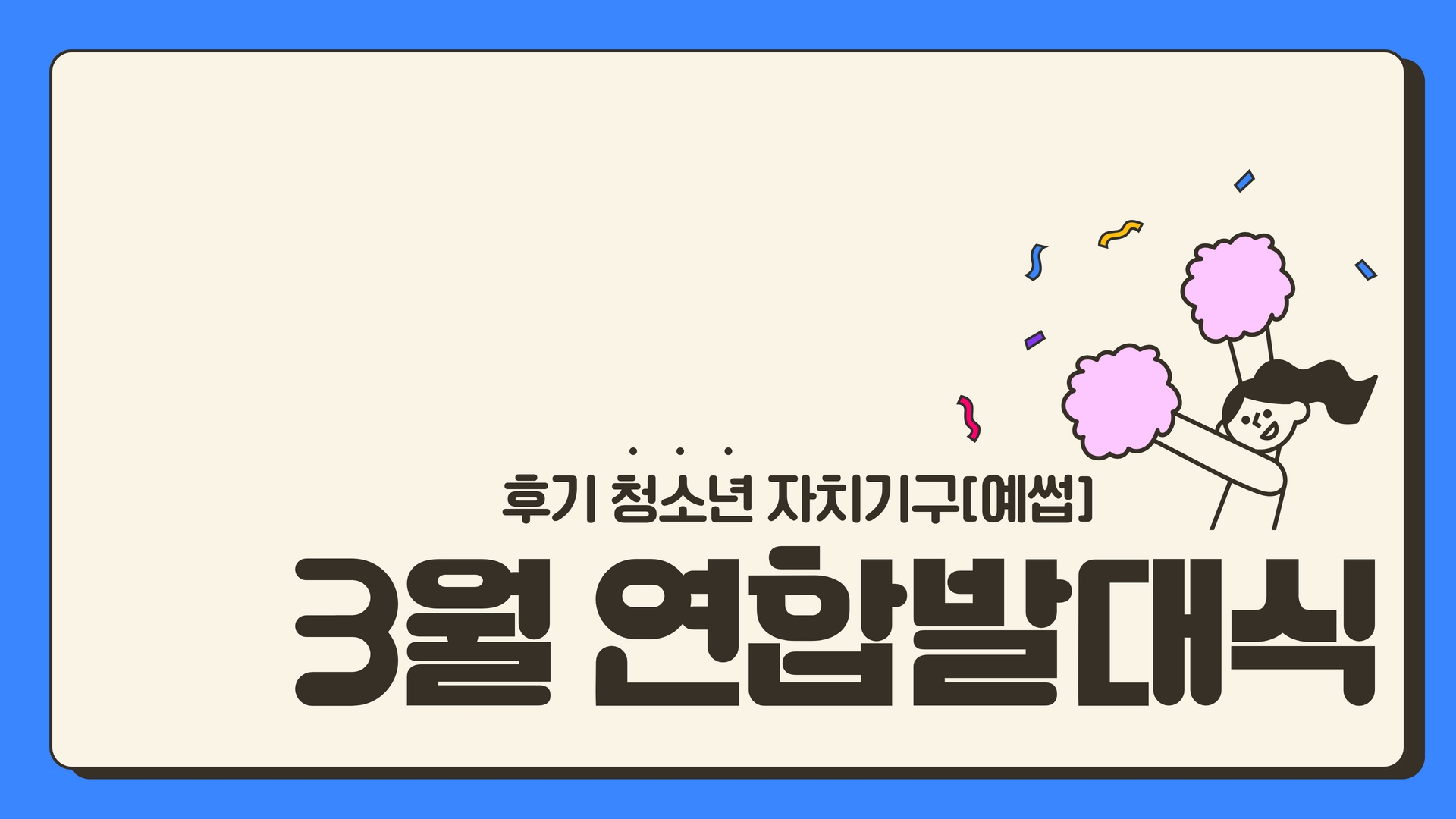 [대학생서포터즈] 3월 연합발대식 작성자 청소년수련관 등록일자 2023년 3월 8일 16시 37분 38초 조회 187 예썹 3월 연합발대식.jpg [ Size : 196.52KB, Down : 105 ] 미리보기 다운로드 예썹 3월 연합발대식_2.jpg [ Size : 698.09KB, Down : 112 ] 미리보기 다운로드 목록보기
