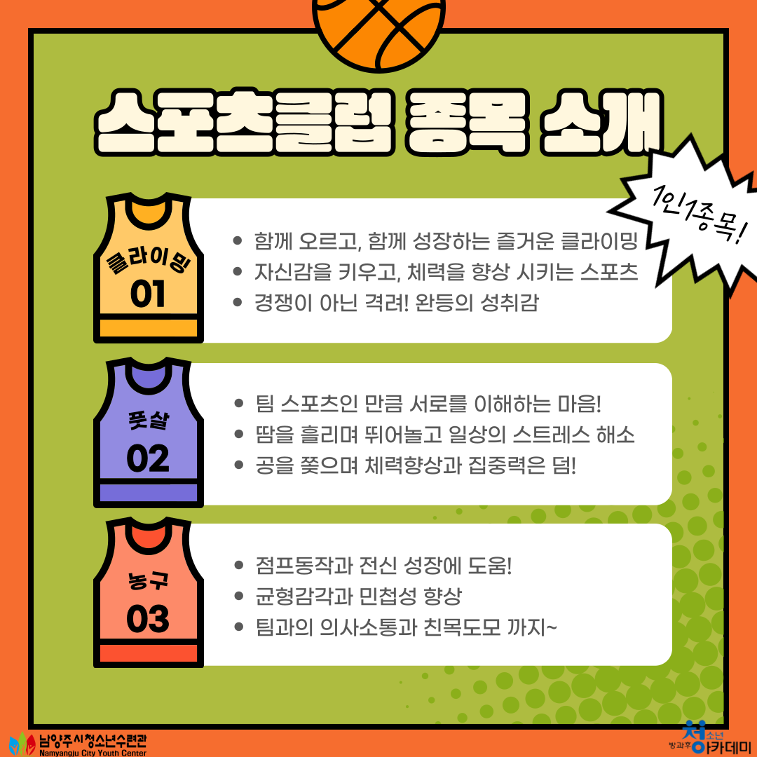 [남양주시청소년방과후아카데미] 해찬솔 청소년1인1종목 스포츠에 도전하다! 스포츠클럽 프로그램!
