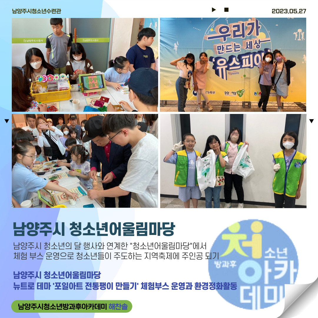 2023년 5월 청소년의 달 행사와 연계하여 남양주시에서는 청소년어울림마당을 개최하였습니다.