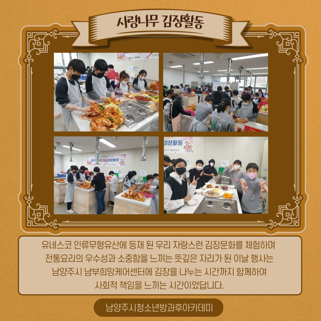 2022년 11월 26일 해찬솔은 김장활동으로 겨울을 맞이했습니다.