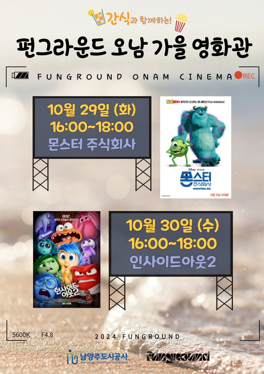 펀그라운드 오남에서 간식과 함께하는 가을 영화관을 개최합니다!