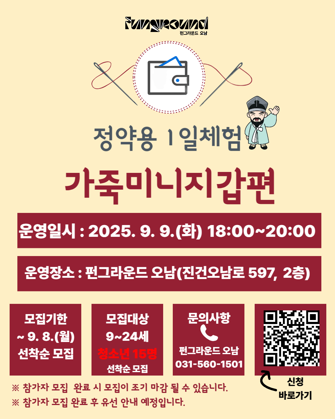 오남 [펀그라운드 오남] 9월 오픈스페이스 정약용 1일체험 가죽미니지갑편 참가자 모집 안내
