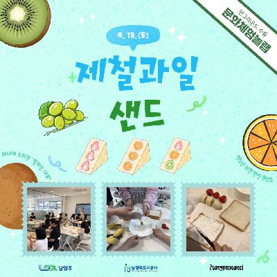 게시판 검색 표시줄수 : 3개씩 보기6개씩 보기9개씩 보기12개씩 보기15개씩 보기18개씩 보기21개씩 보기24개씩 보기27개씩 보기30개씩 보기 검색 대상 : 전체 검색제목내용 검색어 : 검색 총 14건(1/2페이지) [문화체험놀랩] 과일샌드 만들기(4/18) 2026-04-21 [문화체험놀랩] '떡공예가와 함께하는 딸기찹쌀떡 만들기'(3/28) 2026-04-08 [청소년자치기구] 연합발대식(3/21) 2026-03-21 [문화체험놀랩] '아로마테라피스트와 함께하는 자일리톨 캔디 만들기'(3/14) 2026-03-21 [클래스457] '탁구'(1~2월) 2026-03-04 [오픈스페이스] 찾아가는 펀그라운드 수동 '우리동네 동계올림픽: 컬링'(2/24) 2026-02-24 [오픈스페이스] 겨울방학 특집 3탄 '내가 만드는 액막이명태: 굿럭피쉬'(2/21) 2026-02-24 [오픈스페이스] 겨울방학 특집 2탄 '내가 만드는 달콤한 선물: 가나슈 미니타르트'(2/14) 2026-02-19 [오픈스페이스] 겨울방학 특집 1탄 '우리동네 동계올림픽: 컬링'(2/7) 2026-02-12 1 2