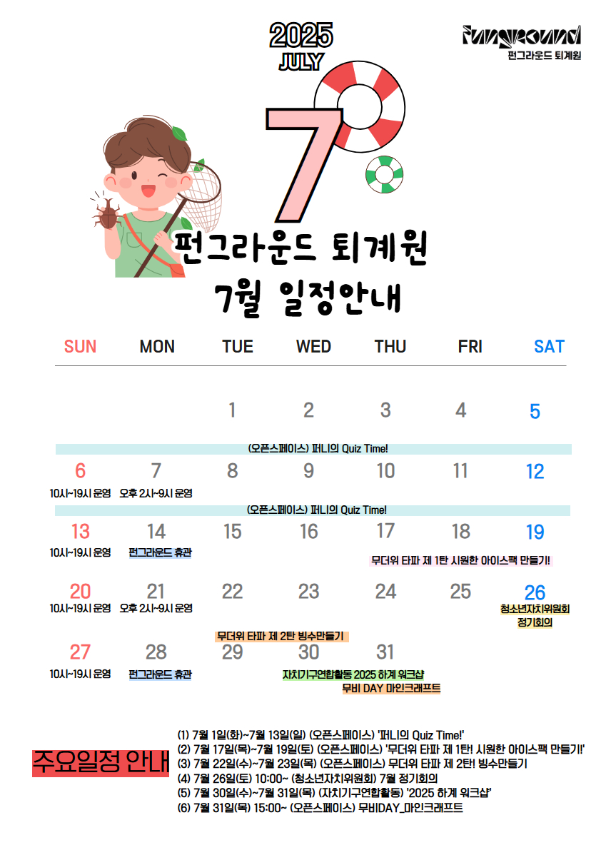 퇴계원 펀그라운드 퇴계원 7월 일정 안내 작성자 펀그라운드 퇴계원 등록일자 2025년 6월 26일 13시 14분 51초 조회 190 (A3) 일정안내.jpg [ Size : 482.05KB, Down : 50 ] 미리보기 다운로드 목록보기