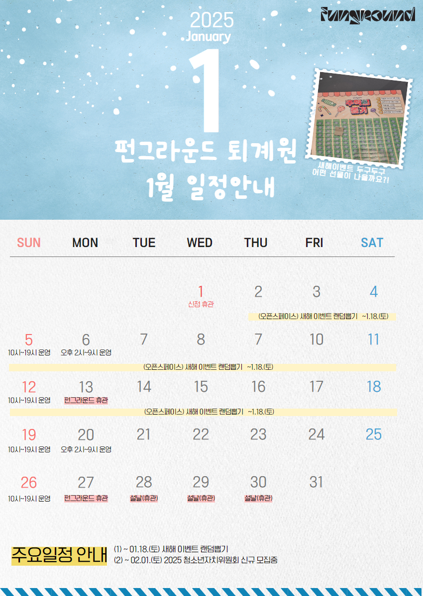 펀그라운드 퇴계원 2025년 1월 일정 안내 입니다 :)