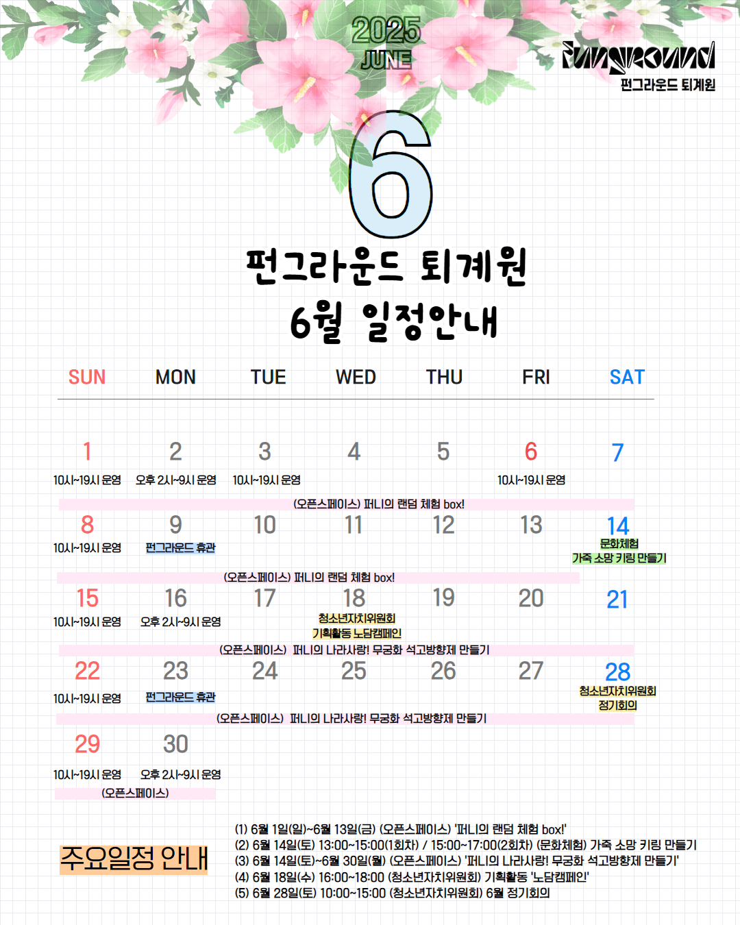 퇴계원 펀그라운드 퇴계원 6월 일정 안내 작성자 펀그라운드 퇴계원 등록일자 2025년 5월 28일 14시 59분 31초 조회 198 (인스타) 일정안내 (1).jpg [ Size : 1.04MB, Down : 107 ] 미리보기 다운로드 목록보기