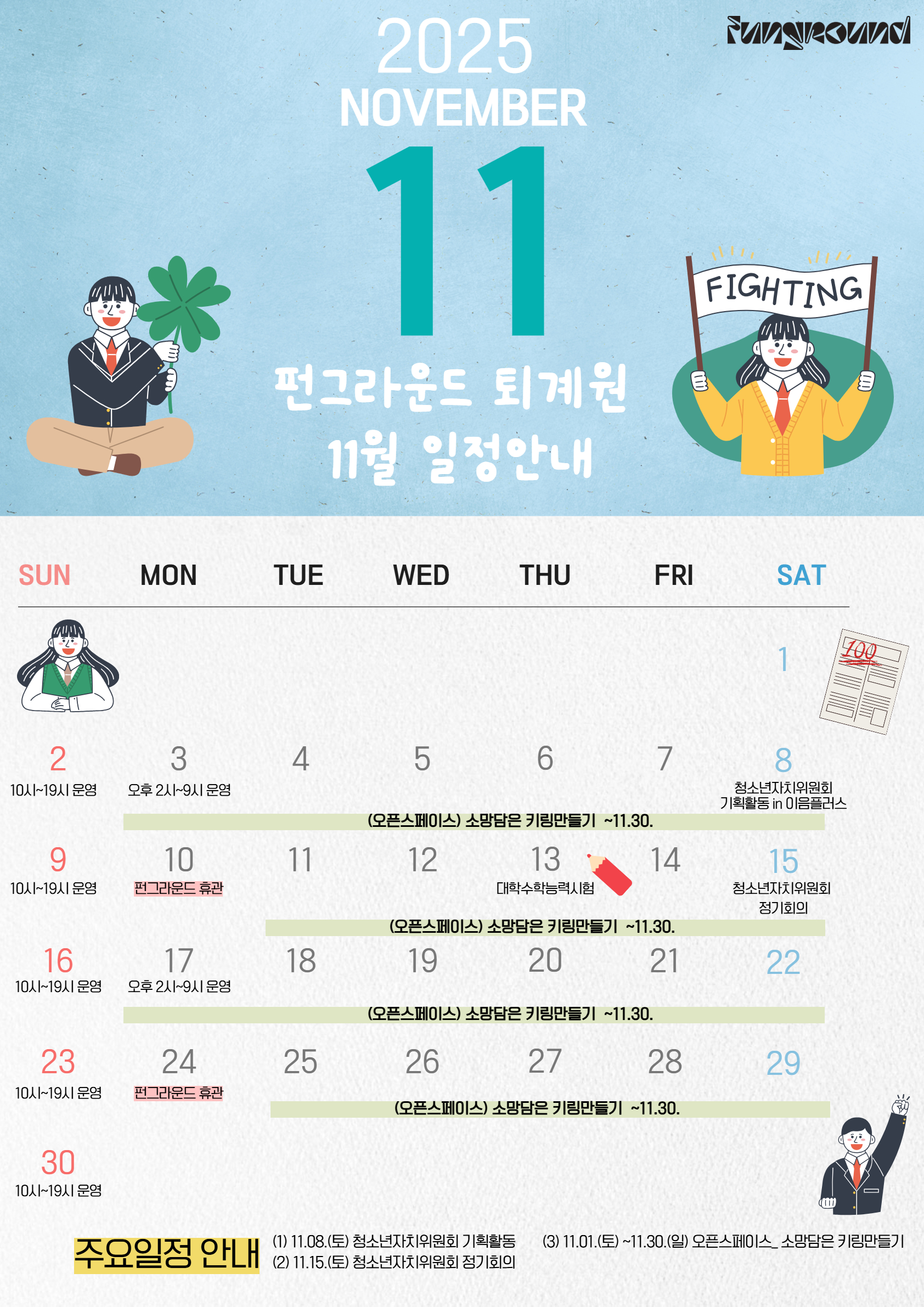 퇴계원 펀그라운드 퇴계원 11월 일정 안내 작성자 펀그라운드 퇴계원 등록일자 2025년 11월 26일 11시 21분 59초 조회 69 (A3) 일정안내 11.jpg [ Size : 2.43MB, Down : 22 ] 미리보기 다운로드 목록보기