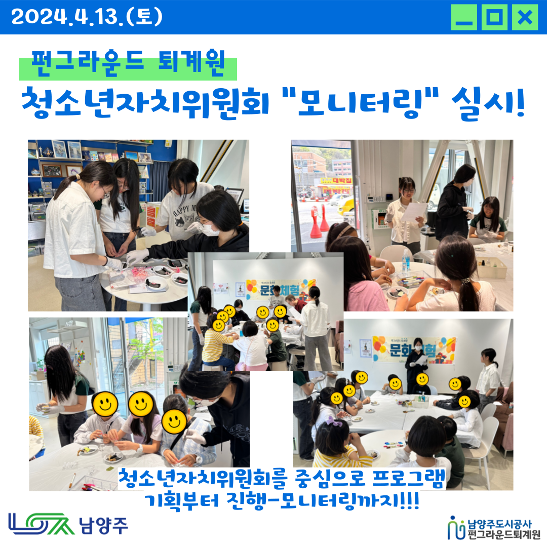 4월 13일 토요일, 펀그라운드 퇴계원 청소년자치위원회를 중심으로 프로그램(4월 문화체험)을 기획하고 진행-모니터링까지 운영했습니다!