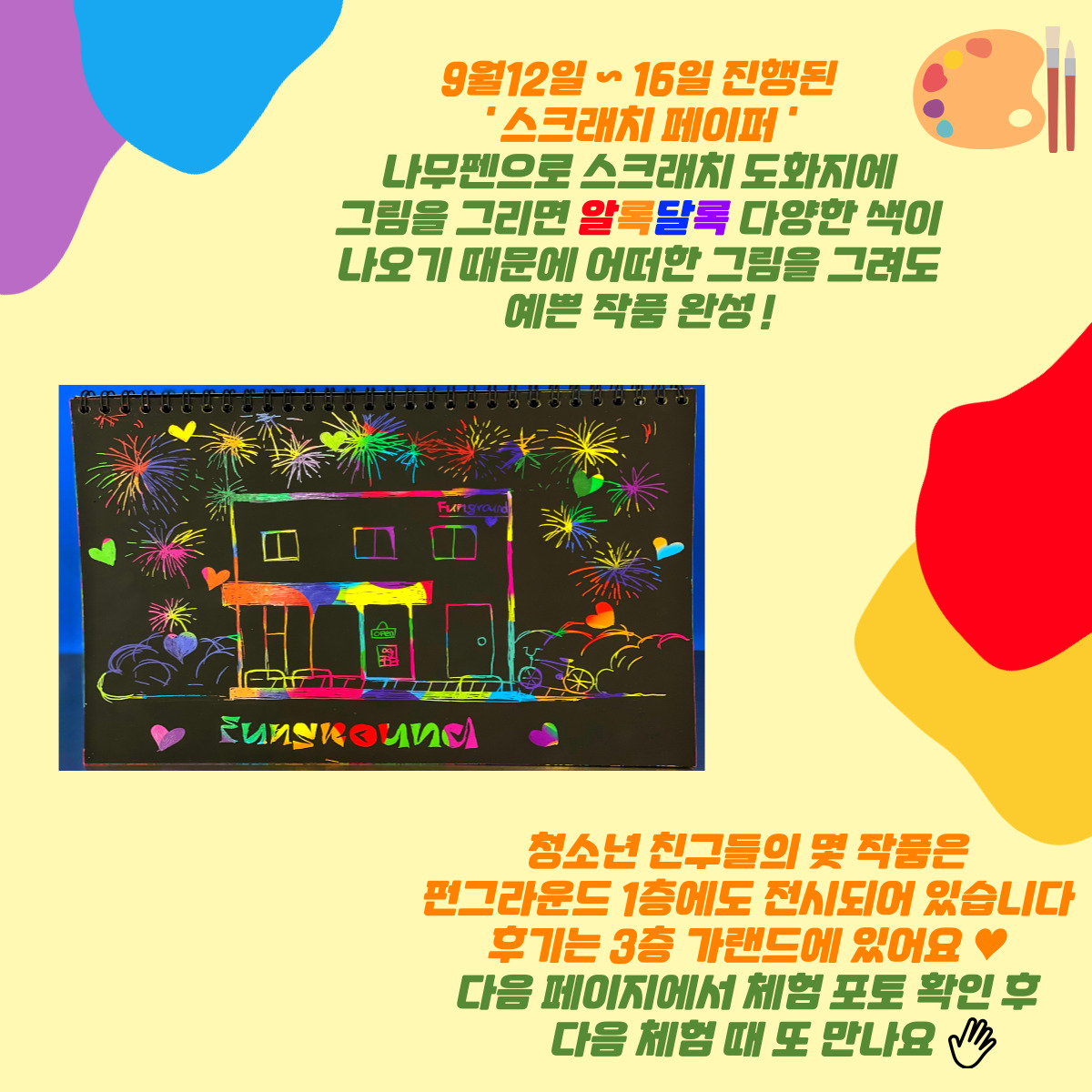 퇴계원 스크래치 페이퍼 현장스케치! 작성자 펀그라운드 퇴계원 등록일자 2023년 11월 17일 16시 50분 28초 조회 220 001 (1).jpg [ Size : 286.72KB, Down : 97 ] 미리보기 다운로드 002 (1).jpg [ Size : 361.79KB, Down : 106 ] 미리보기 다운로드 003.jpg [ Size : 489.77KB, Down : 115 ] 미리보기 다운로드 목록보기