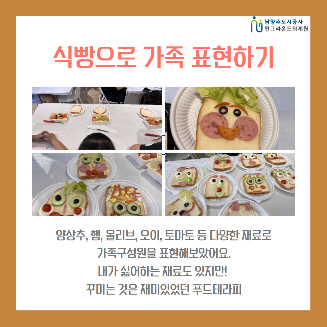 청소년이 흔히 접하는 식빵, 야채들을 활용해서 가족을 표현하고 나를 표현하는 시간을 가지고~