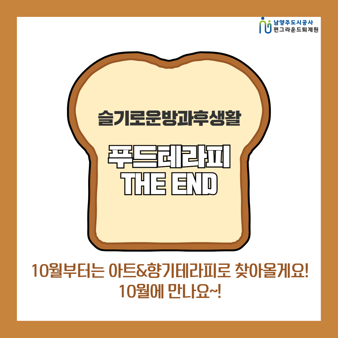 이렇게 푸드테라피의 이야기는 끝이 났지만 10월에는 더 다양한 테라피의 주제로 진행되오니 많은 관심 부탁드립니다!