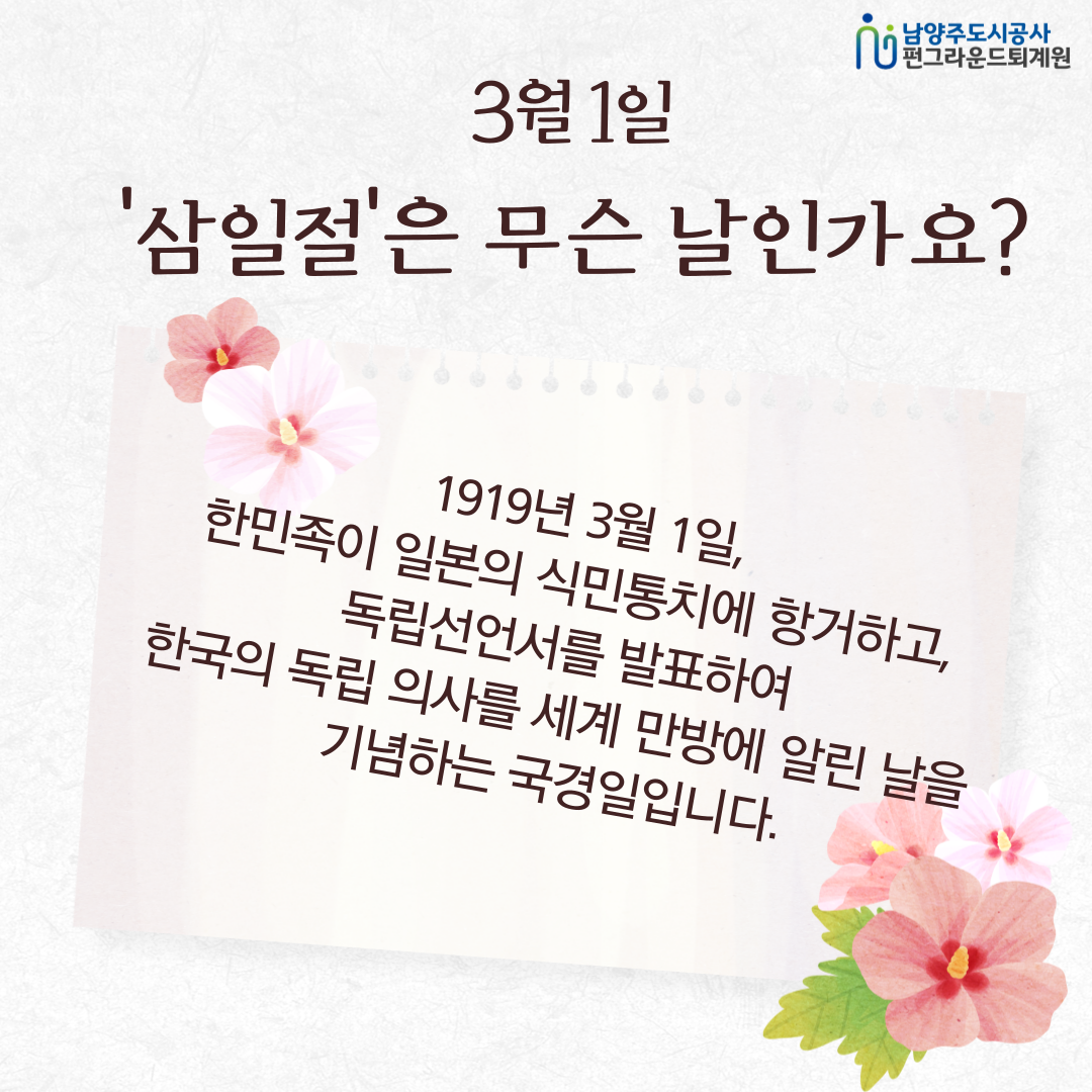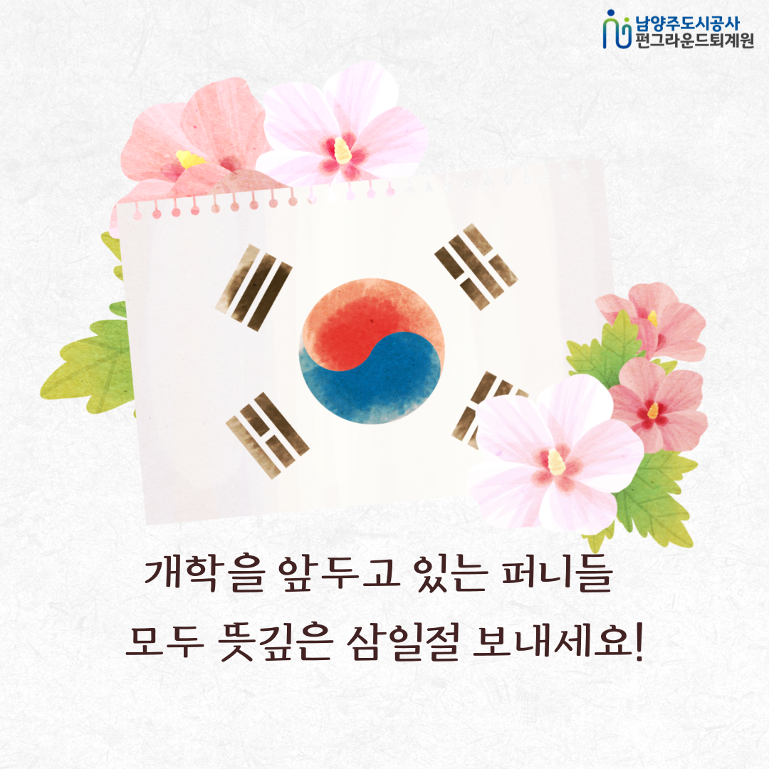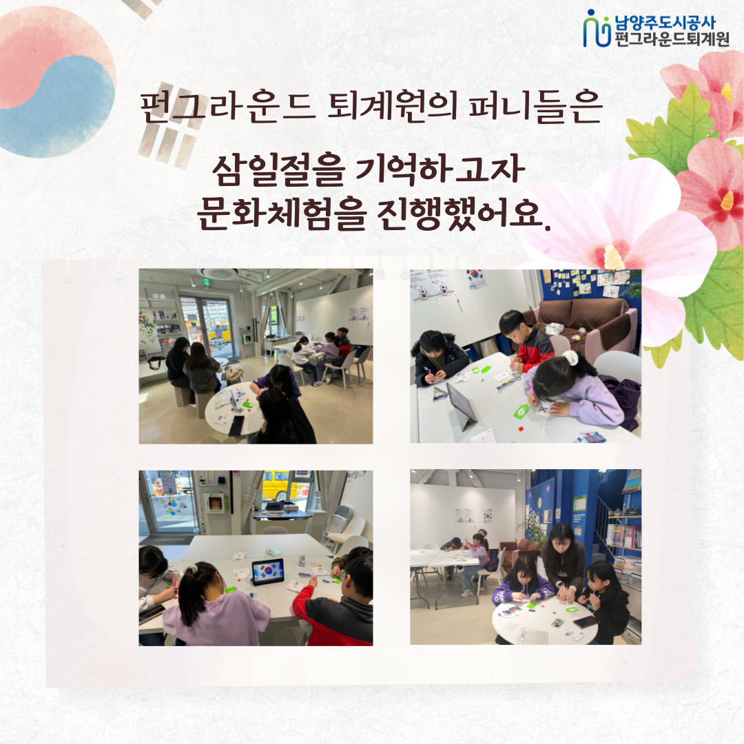 공지 퇴계원 2024년 펀그라운드 퇴계원 3월 문화체험 후기 작성자 펀그라운드진접 등록일자 2024년 3월 1일 14시 55분 49초 조회 181 펀그라운드 퇴계원에서는 오늘 삼일절을 맞아 태극기만들기를 진행했습니다~!자세한 내용은 카드뉴스로 전해드릴게요~!!개학을 앞둔 퍼니들! 모두 뜻깊은 삼일절 보내세요 ㅎㅎ 001.png [ Size : 1.03MB, Down : 70 ] 미리보기 다운로드 002.png [ Size : 982.73KB, Down : 72 ] 미리보기 다운로드 003.png [ Size : 1.26MB, Down : 60 ] 미리보기 다운로드 004.png [ Size : 1003.07KB, Down : 76 ] 미리보기 다운로드 목록보기
