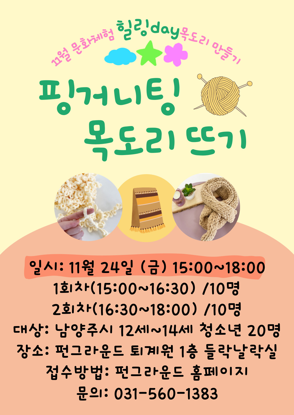 | 프로그램명 | [11월 문화체험]힐링 day 핑거니팅 목도리 뜨기 |