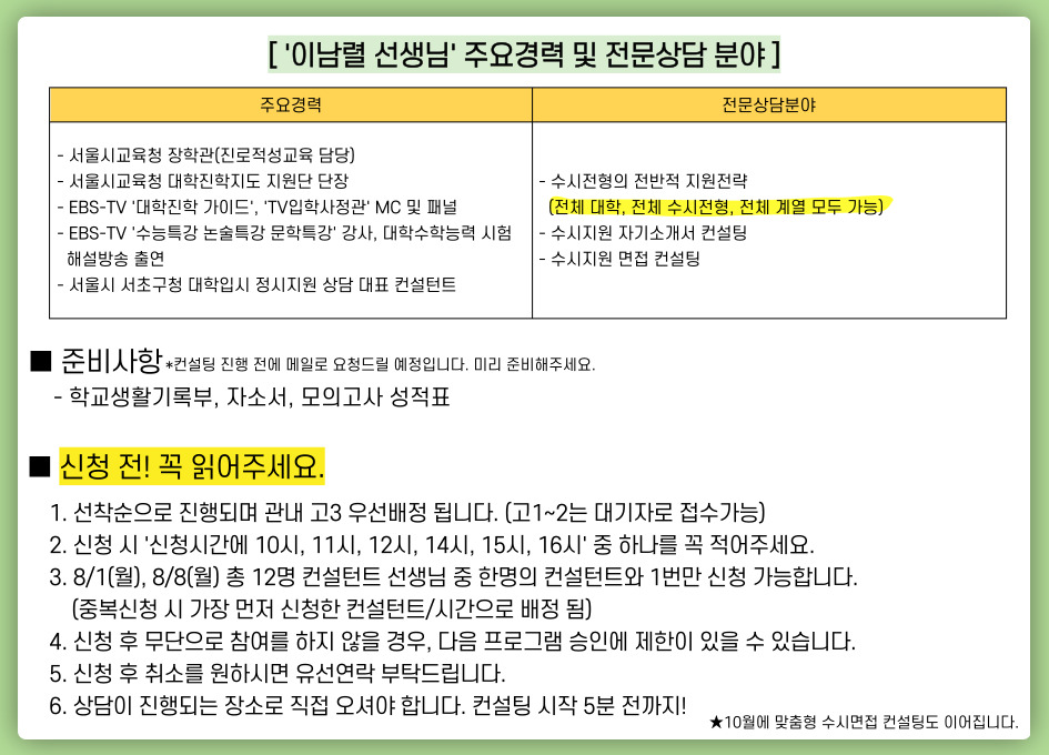 (고등진로) 대입 수시전형 1:1 맞춤형 종합컨설팅
