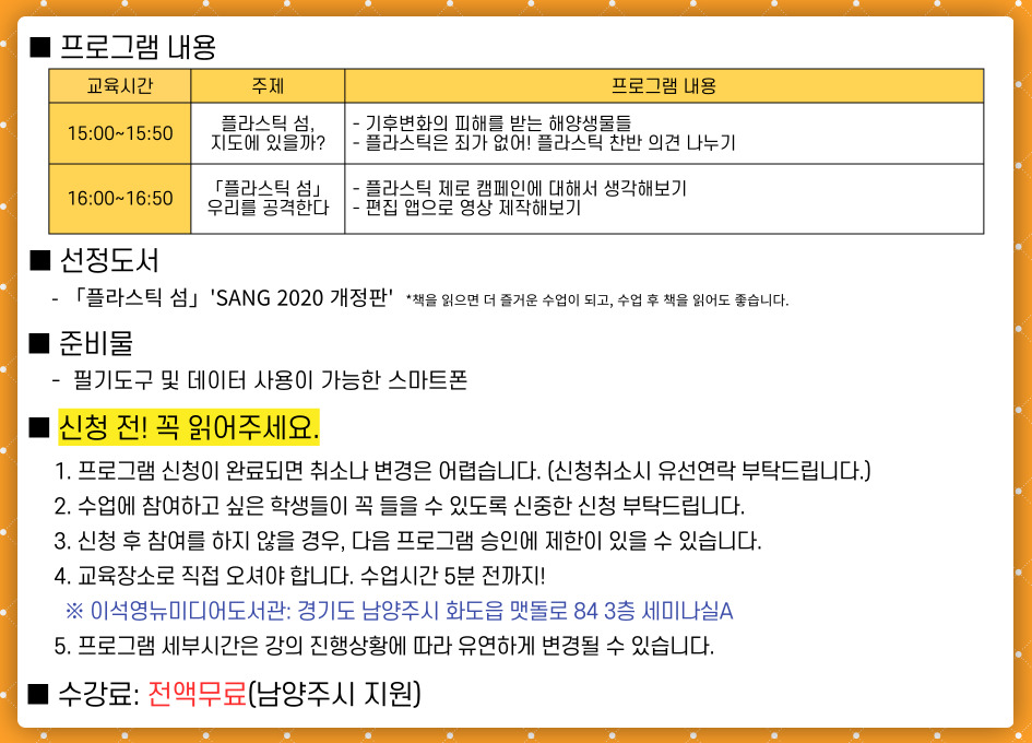 교육장소 이석영뉴미디어도서관 3층 세미나실A