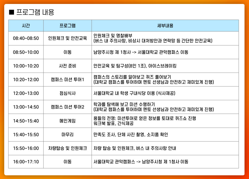 | 프로그램명 | (초등고학년진로) 무한상상 캠퍼스 레이스 : 서울대편 |