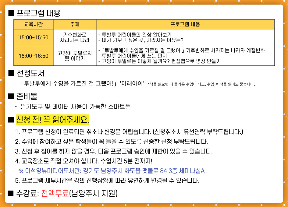 교육장소 이석영뉴미디어도서관 3층 세미나실A
