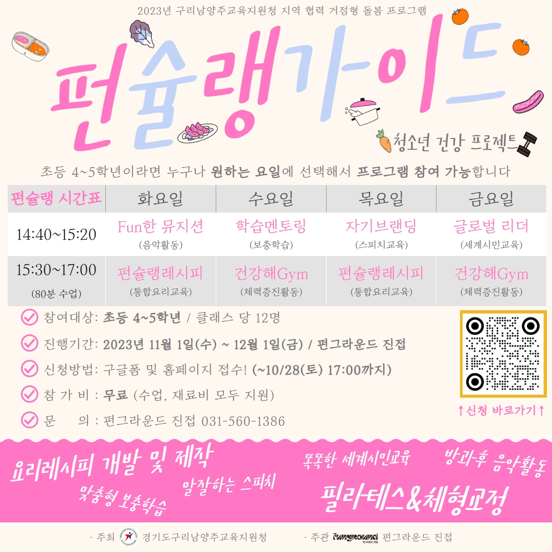 2023년 구리남양주교육지원청 지역 협력 거점형 돌봄프로그램  "펀슐랭 가이드" 참가자 모집 연장!!!!