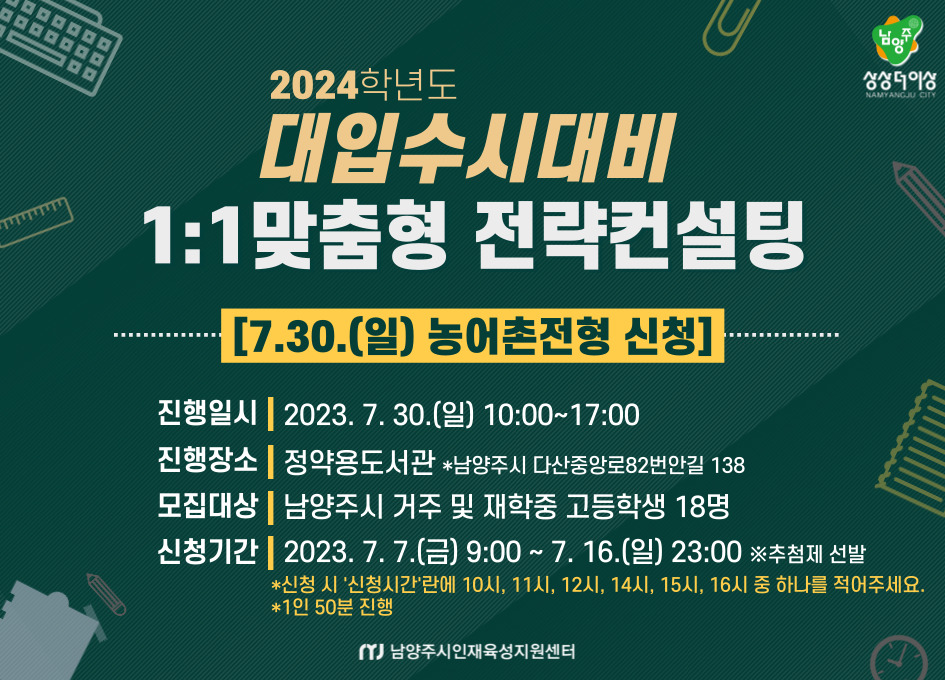 (농어촌전형신청 7/30(일)) 대입수시대비 1:1 맞춤형 전략컨설팅_다산동