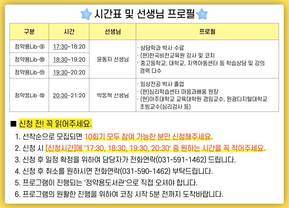 ⑨17:30~18:20, ⑩18:30~19:20, ⑪19:30~20:20, ⑫20:30~21:20 중 택1 |