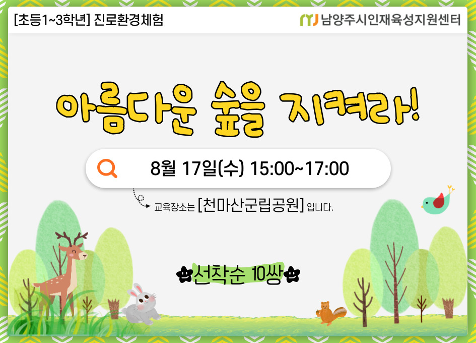 | 프로그램명 | (초등저학년진로) 아름다운 숲을 지켜라! |