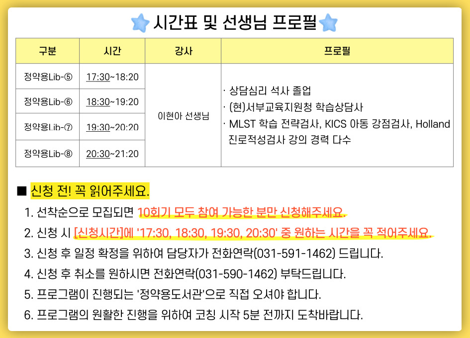 수업시간 ⑤17:30:18:20, ⑥18:30~19:20, ⑦19:30~20:20, ⑧20:30~21:20 중 택1