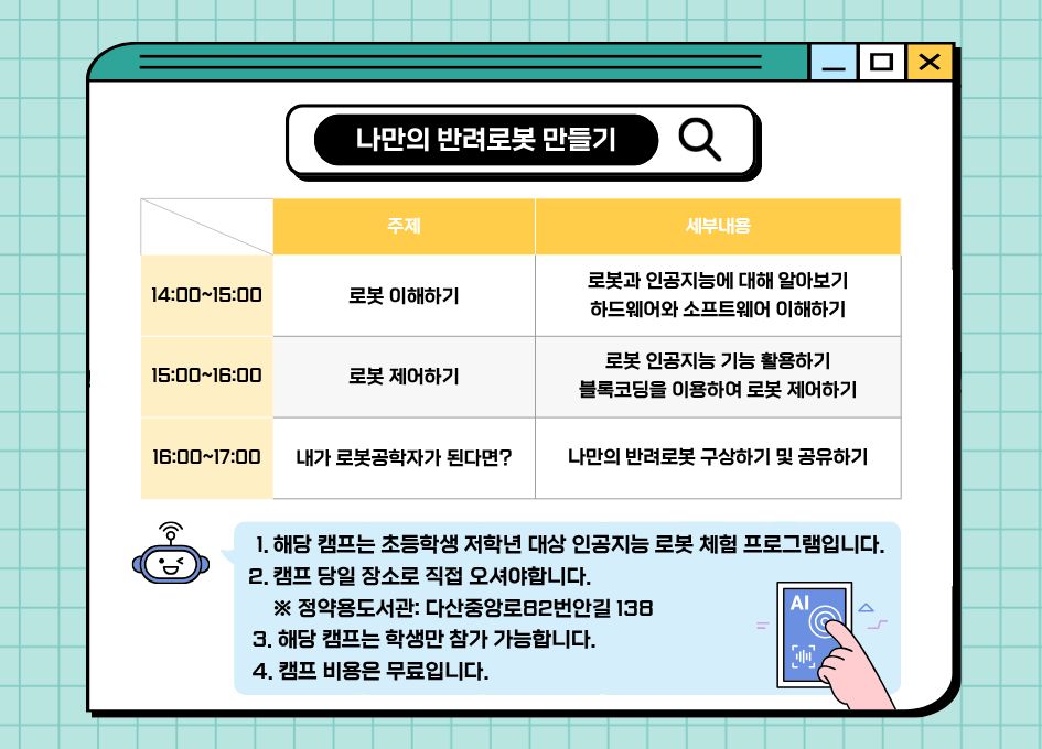 | 프로그램명 | [저학년 오후반] 2026년 로봇공학 진로캠프 |