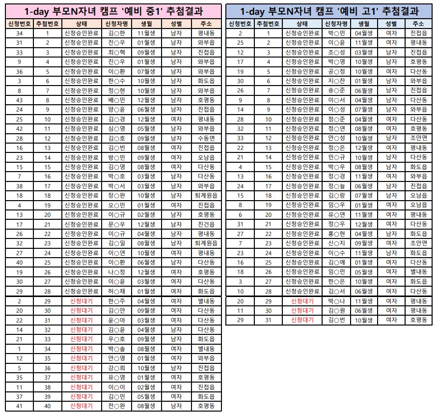 인재육성지원센터 [인재육성지원센터] 1-day 부모N자녀 진로캠프 추첨제 결과안내
