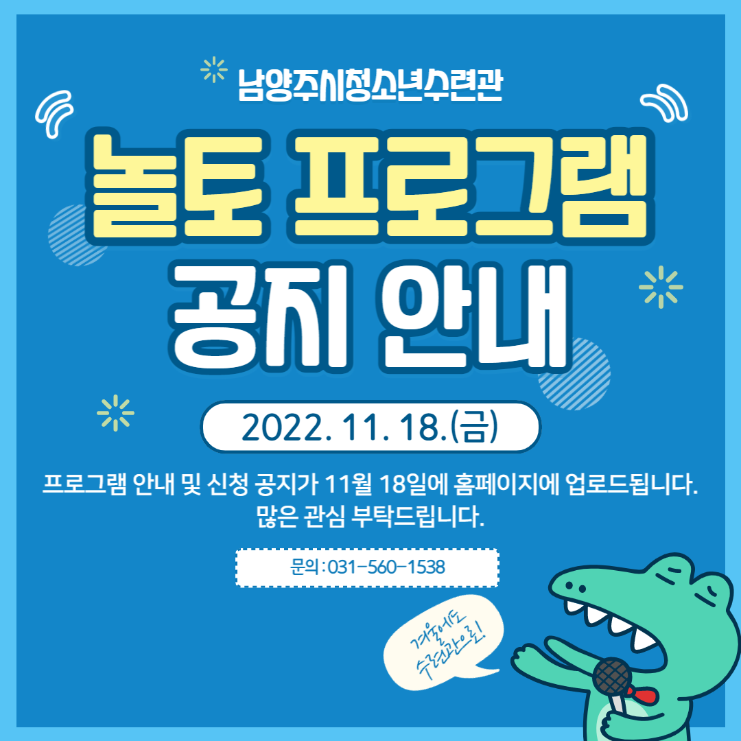청소년수련관 [놀토] 2022년 11월~12월 놀토 프로그램 신청 관련 안내