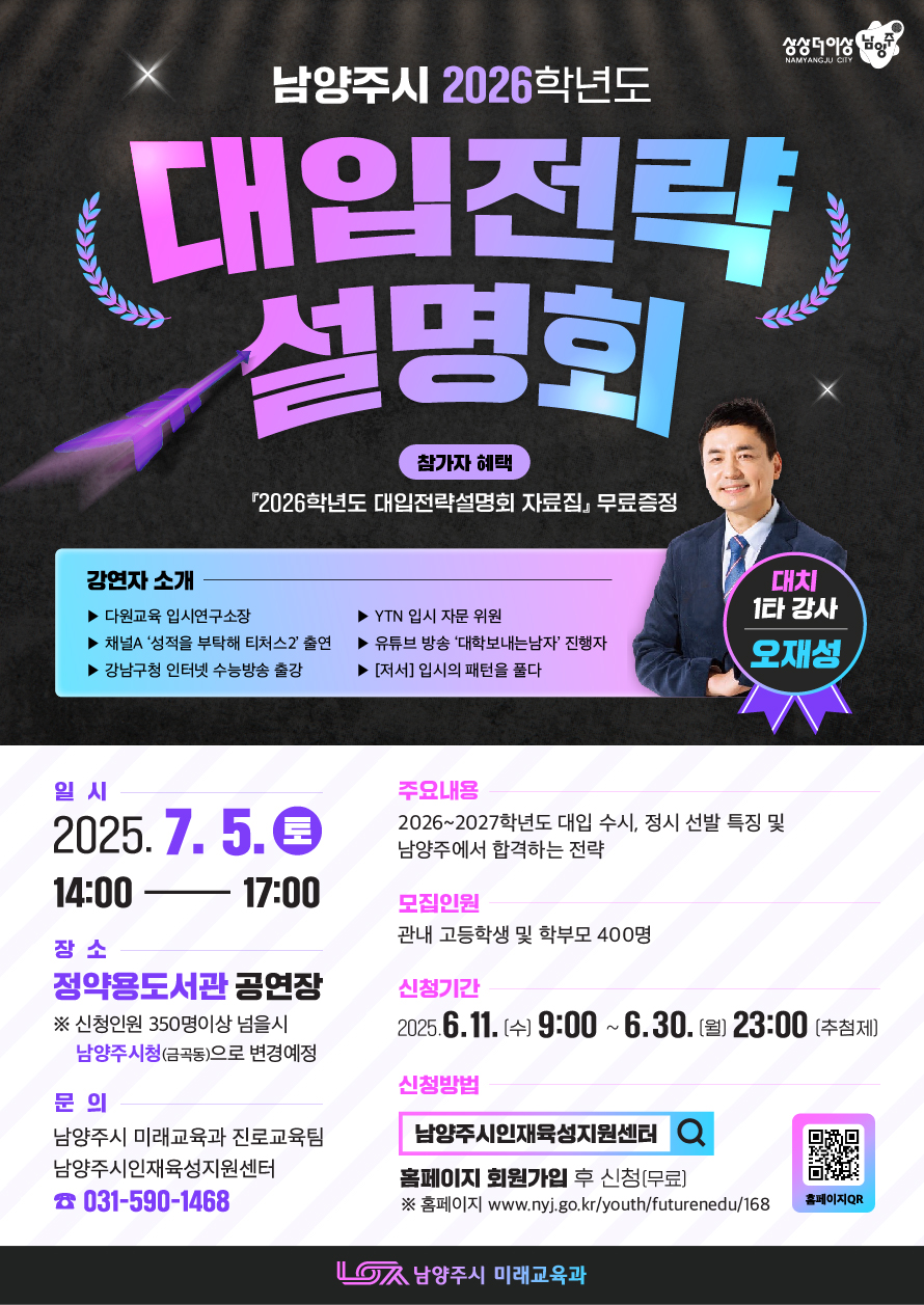 1. 포스터_남양주시 2026학년도 대입전략설명회.jpg   [ Size : 798.21KB, Down : 2,113 ] 미리보기 다운로드