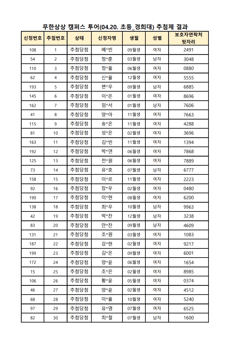 ▷04.20.(초등)경희대편 신청확인 페이지 바로가기◁