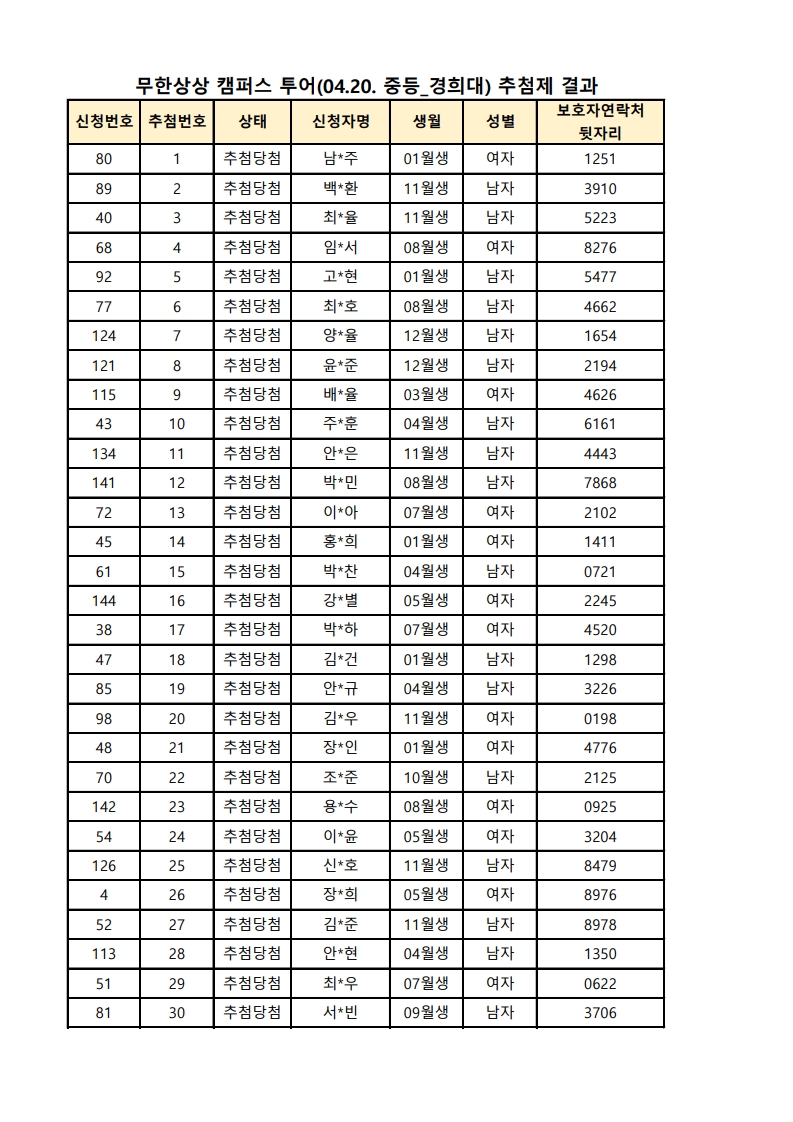 ▷04.20.(중등)경희대편 신청확인 페이지 바로가기◁