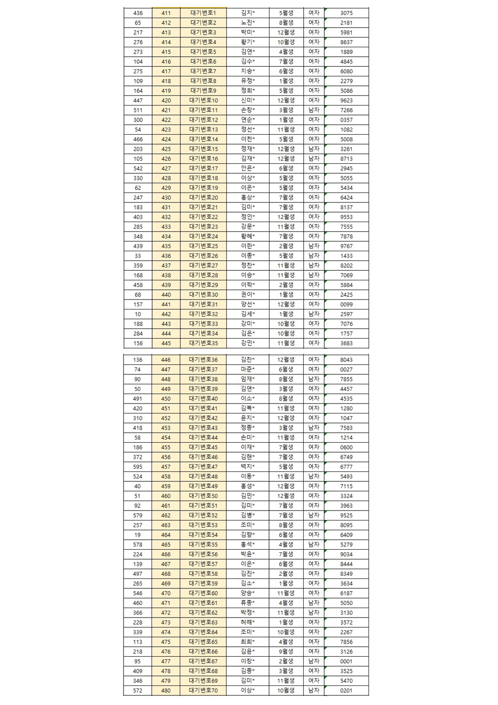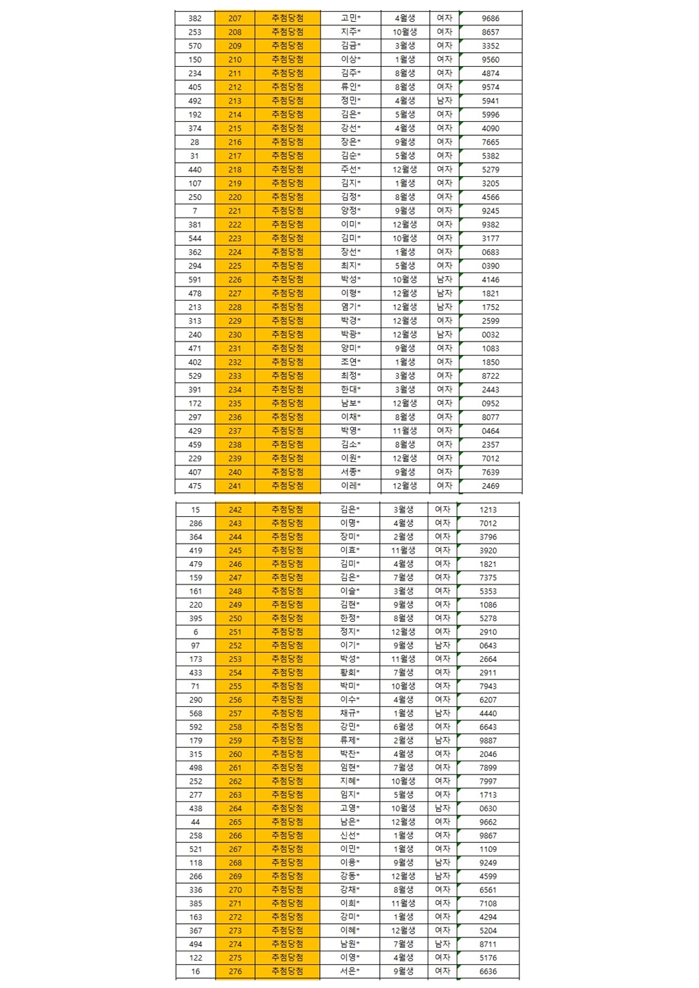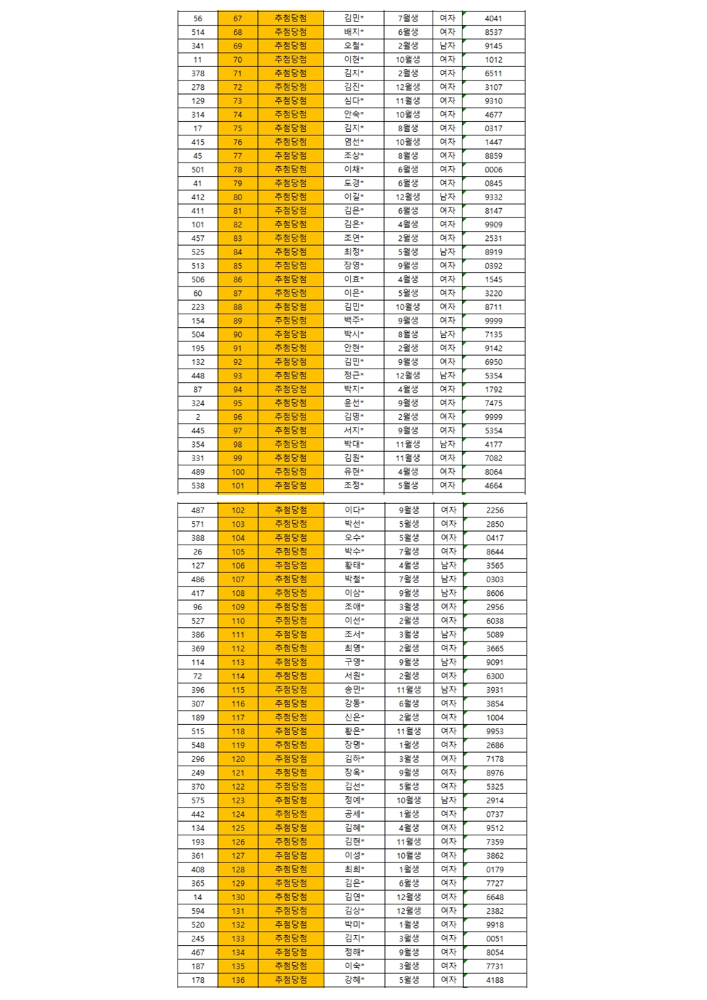 추첨제 결과를 아래와 같이 공지하오니, 확인 부탁드립니다.