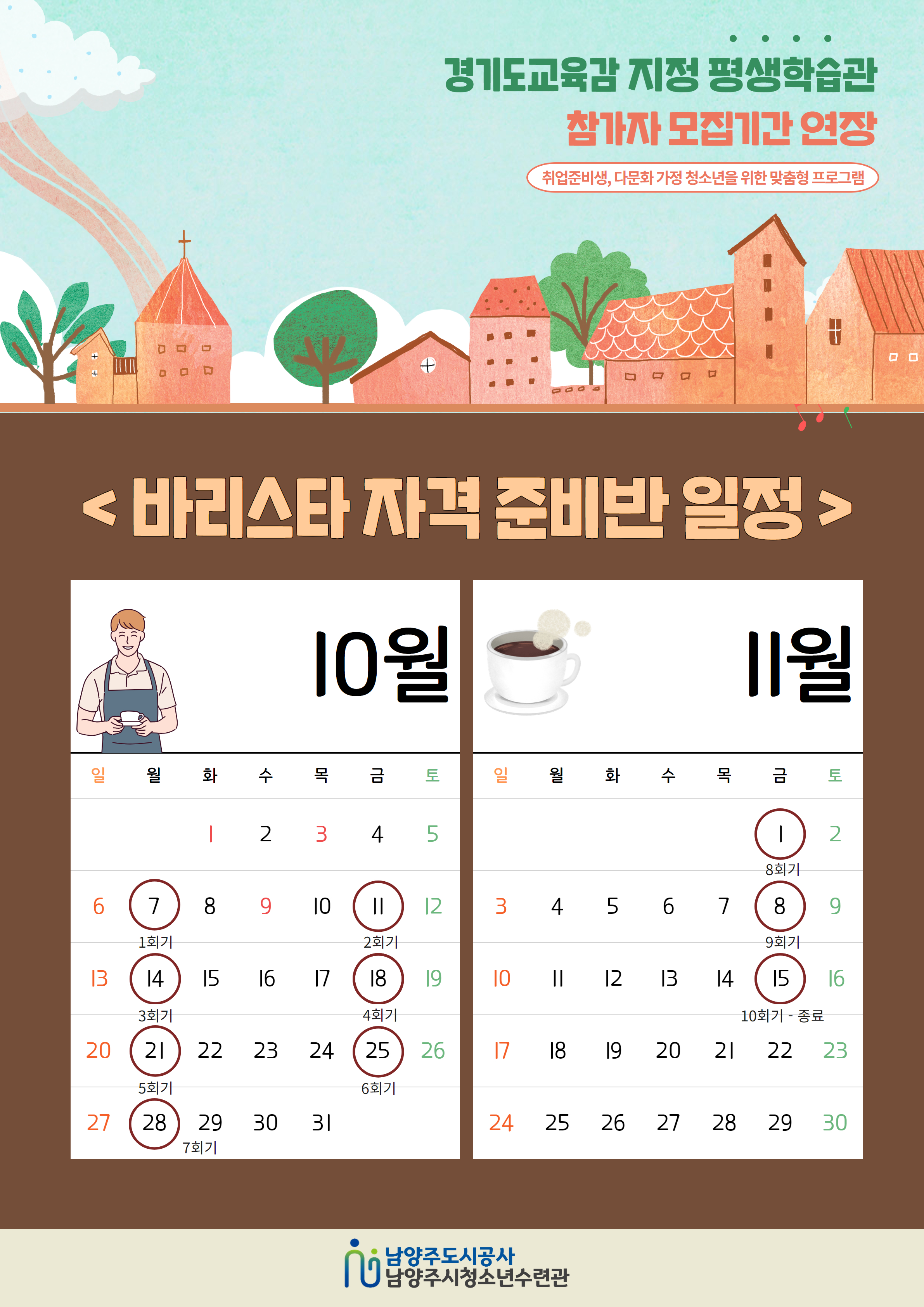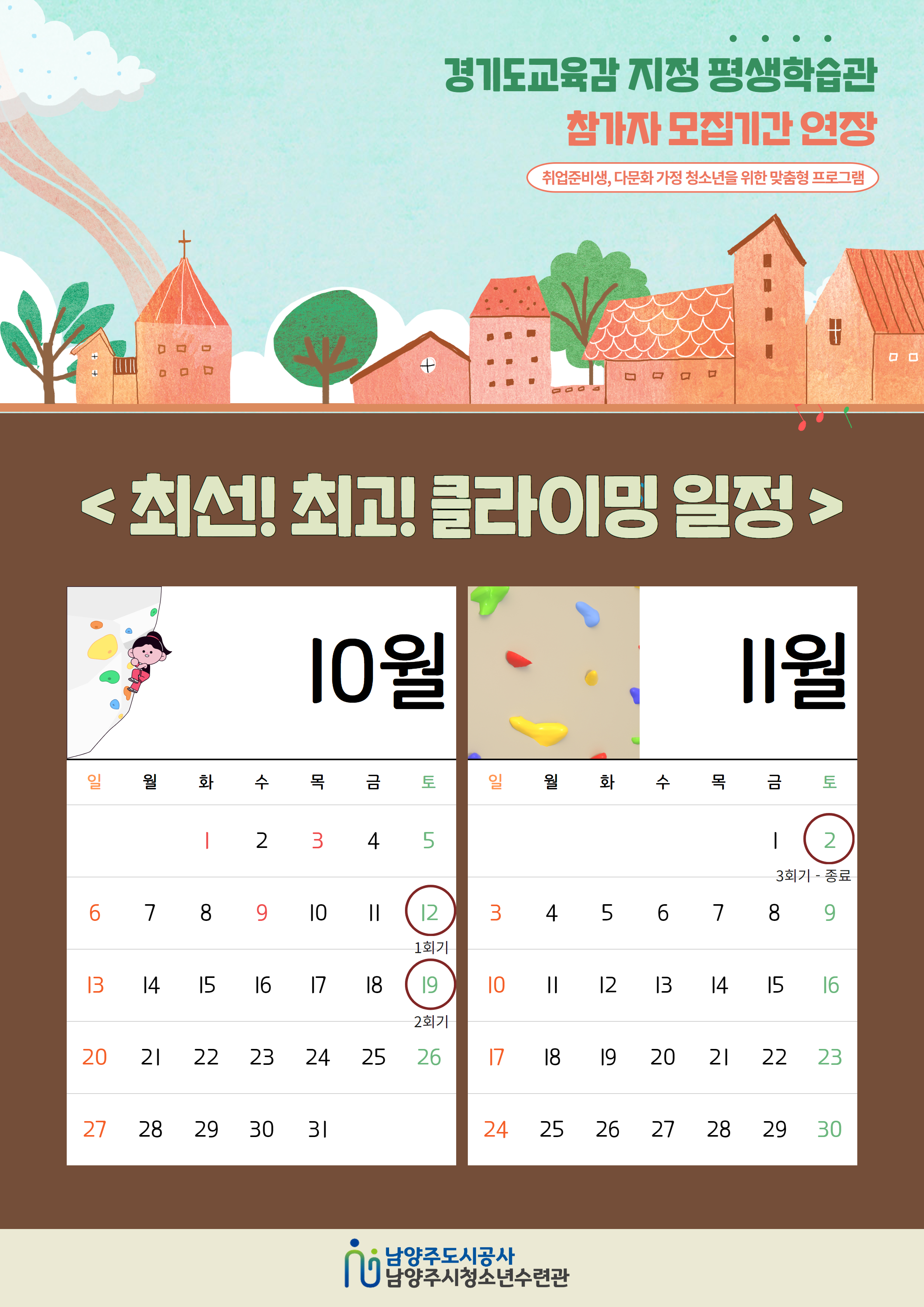 청소년수련관 남양주시청소년수련관 평생학습관 프로그램 참가자 모집기간 연장 안내 작성자 청소년수련관 등록일자 2024년 9월 26일 15시 52분 47초 조회 465 남양주시청소년수련관 평생학습관 프로그램 참가자 모집기간 연장 안내○ 모집기간: 2024년 10월 4일(금)까지 강좌별 선착순 접수○ 강좌별 모집인원, 대상, 활동일시, 수강 장소, 수강료 등 내용이 상이하오니 아래의 홍보포스터를 참고하여 주시기 바랍니다. ○ 문의 : 남양주시청소년수련관 031-560-1532 평생학습관 포스터 수정 1.jpg [ Size : 4.17MB, Down : 120 ] 미리보기 다운로드 평생학습관 포스터 수정 2.jpg [ Size : 3.07MB, Down : 108 ] 미리보기 다운로드 평생학습관 포스터 수정 3.jpg [ Size : 1.15MB, Down : 212 ] 미리보기 다운로드 평생학습관 포스터 수정 4.jpg [ Size : 3.02MB, Down : 121 ] 미리보기 다운로드 목록보기