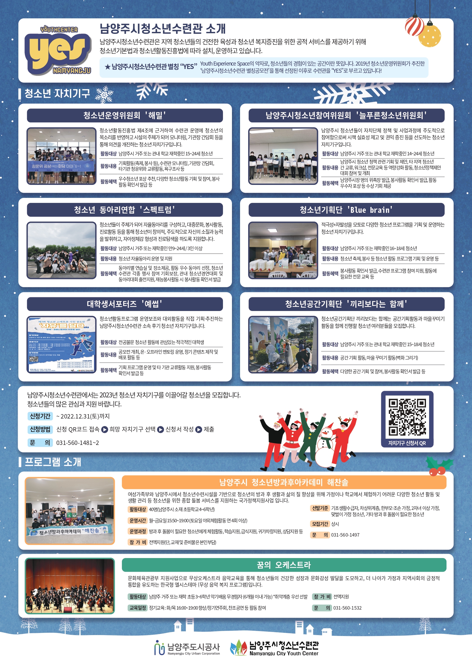 청소년수련관 2023년 남양주시청소년수련관 청소년 자치기구 참여자 모집