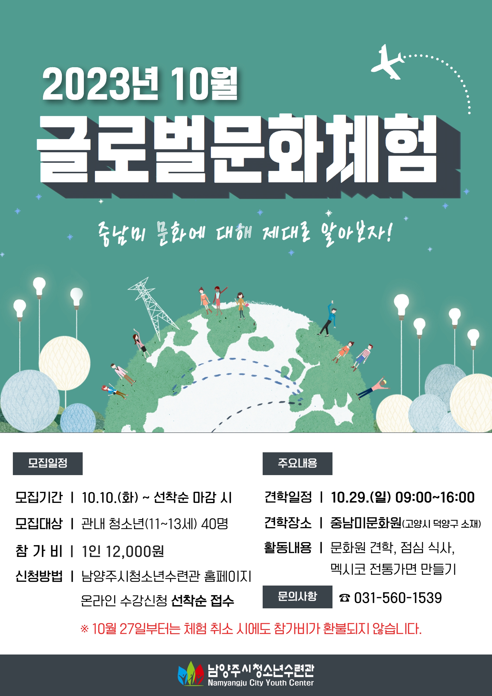 청소년수련관 2023년 10월 글로벌문화체험 참가자 모집