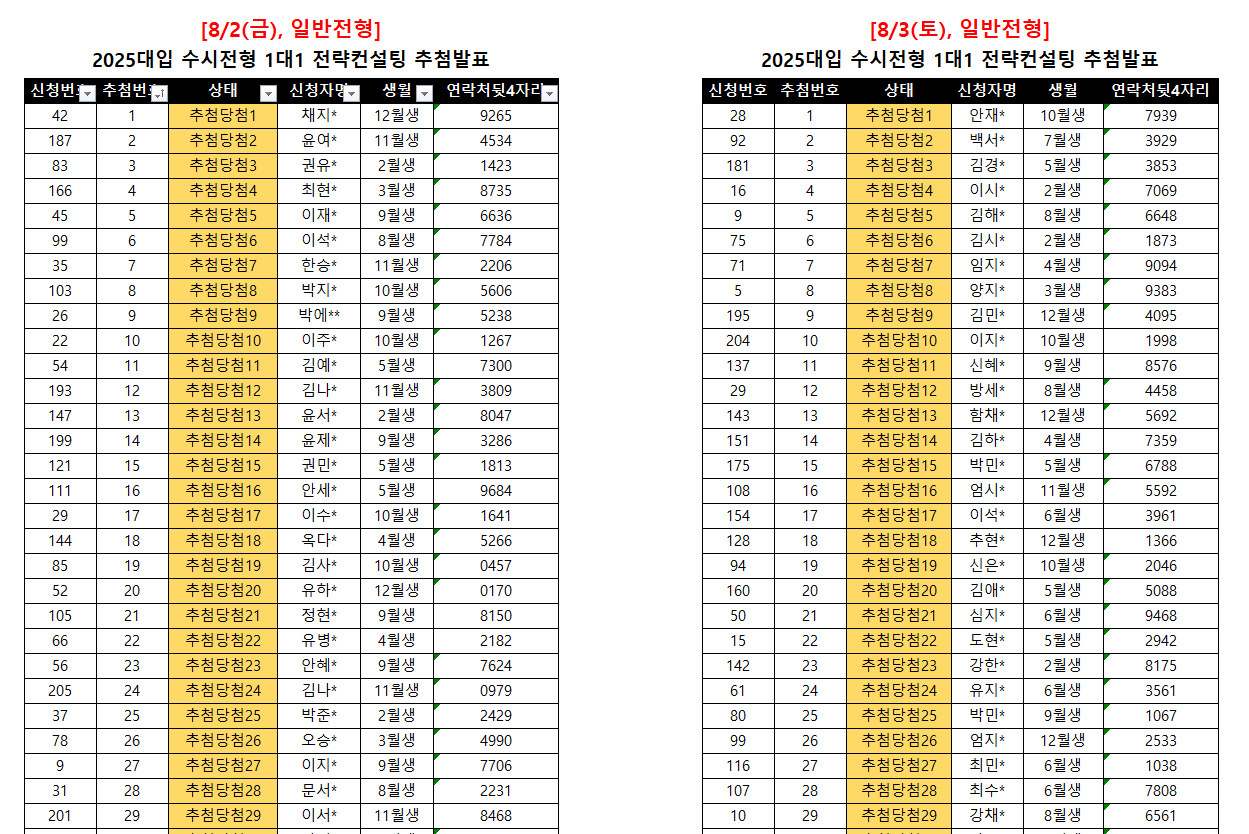 8/2(금) 일반전형 신청확인 >> [8/2{(금) 일반전형} 2025 대입 수시전형 1:1 전략컨설팅