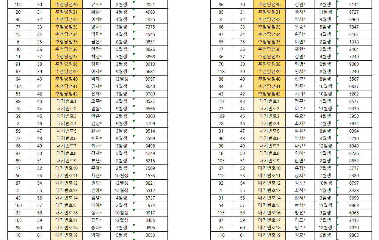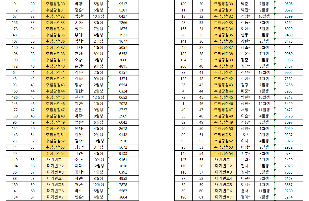 추첨제 결과는 아래와 같이 공지하오니, 확인 부탁드립니다.