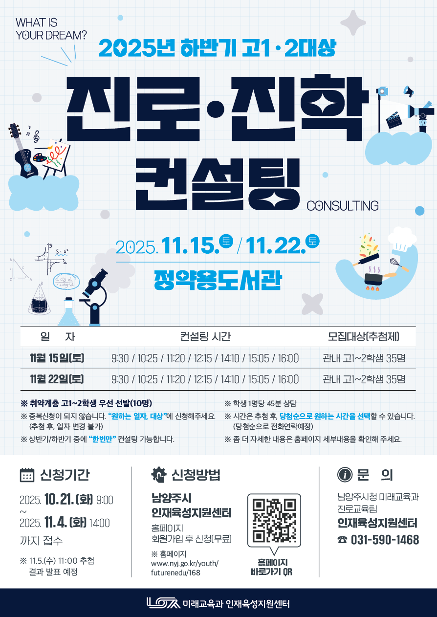 1) [11/15(토) 일반참여자 신청] 2025년 하반기 고1~2대상 진로진학 컨설팅 <<클릭